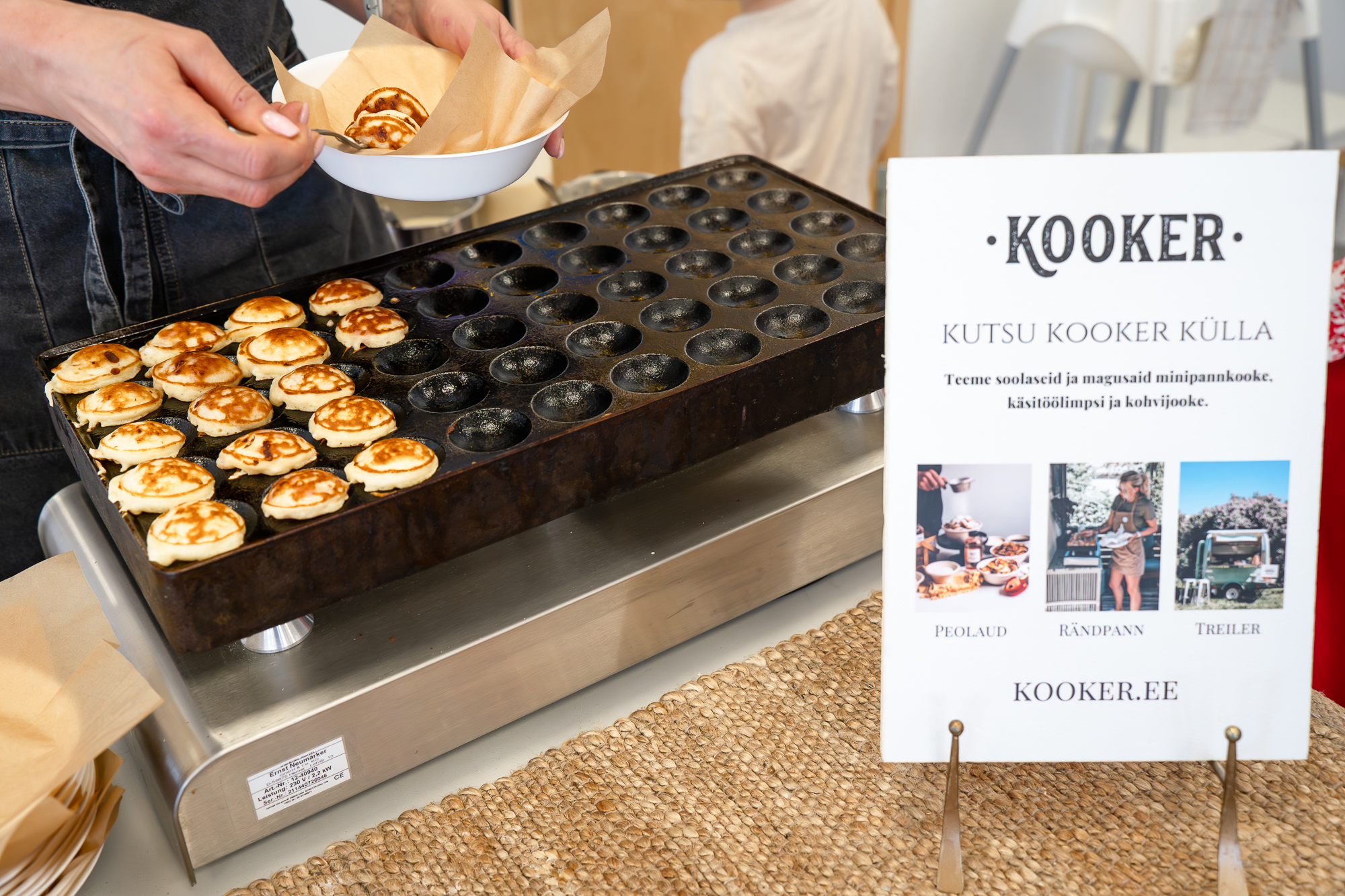 Kooker pakub selleks mitmeid võimalusi. Sündmusele saab tulla kohale rändpanniga, kus minipannkoogid küpsevad otse külaliste silme all, või suuremate ürituste puhul food truckiga, mis toob peole lausa väikese toiduauto. Soovi korral saab tellida ka Kookeri e-poest valmis peolaua, kus minipannkoogid jõuavad sündmusele otse pannilt ja on serveerimiseks valmis. Kõikide e-poe tellimuste puhul on kaasas ka serveerimiseks vajalikud vahendid.