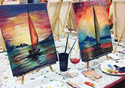 Juhendatud maalimine stuudios Vein & Pintsel. Pilt nende koduleheküljelt.