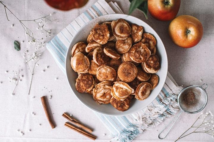 Magusate minipannkookide täidiseks on õunakuubikud. Kaasa tuleb kaneelisuhkur. Vali juurde teisigi magusaid lisandeid ja tunne imelist maitserõõmu.